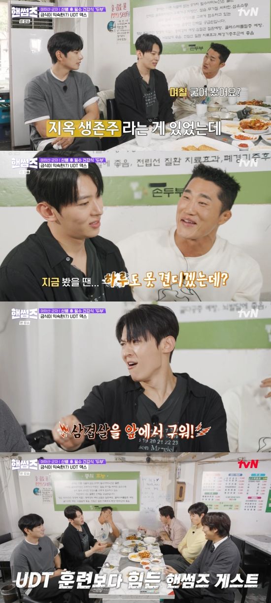 12일 방송된 tvN '핸썸가이즈'(이하 '핸썸즈')에서는 덱스가 UDT 특전사 생식주 훈련을 받았다고 밝힌 장면이 전파를 탔다.