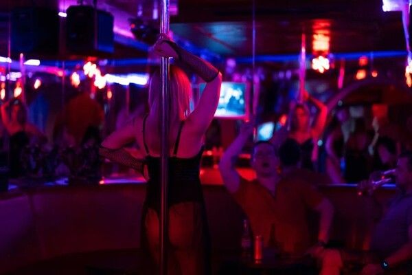 음악이 시작되면 댄서 한 명은 봉을 잡고 돌고, 다른 댄서는 손님과 진지한 대화를 나누고, 또 다른 댄서는 손님의 무릎에 앉는다.