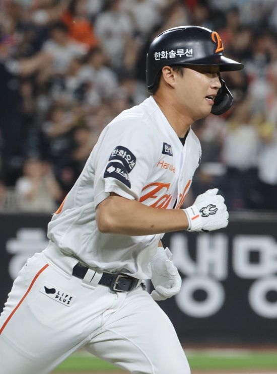 반격에 나선 한화는 1회 말 1사 뒤 하주석의 사구로 첫 출루했다. 이후 노시환이 상대 선발 투수 로그의 4구째 126km/h 커브를 통타해 비거리 115m짜리 좌월 동점 2점 홈런으로 연결했다.