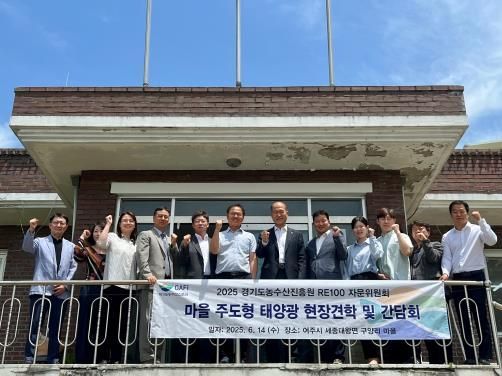 [와이뉴스] 경기도농수산진흥원은 12일 RE100 자문위원회, 농림축산식품부 관계자와 함께 전국 최초로 주민 주도형 마을 태양광 발전소를 운영하는 여주시 세종대왕면 구양리 마을을 찾았다.