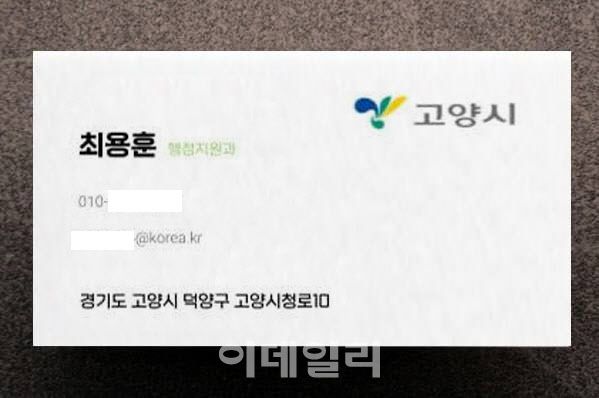 명함에는 정부 및 지방자치단체 공무원들의 공동 이메일 도메인을 활용한 이메일 주소와 휴대폰 번호가 적혀있다.