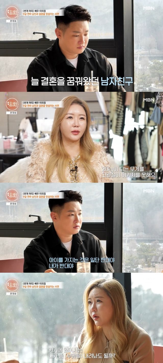 이에 남자친구는 "자기가 안 아파야 한다. 아프고 생명의 위협 느끼며 아이 가지는 건 내가 반대다"라고 이야기했고, 이의정은 "고민 많았다. 거기에 있어선 부담을 내려놔도 될까"라고 물었다.