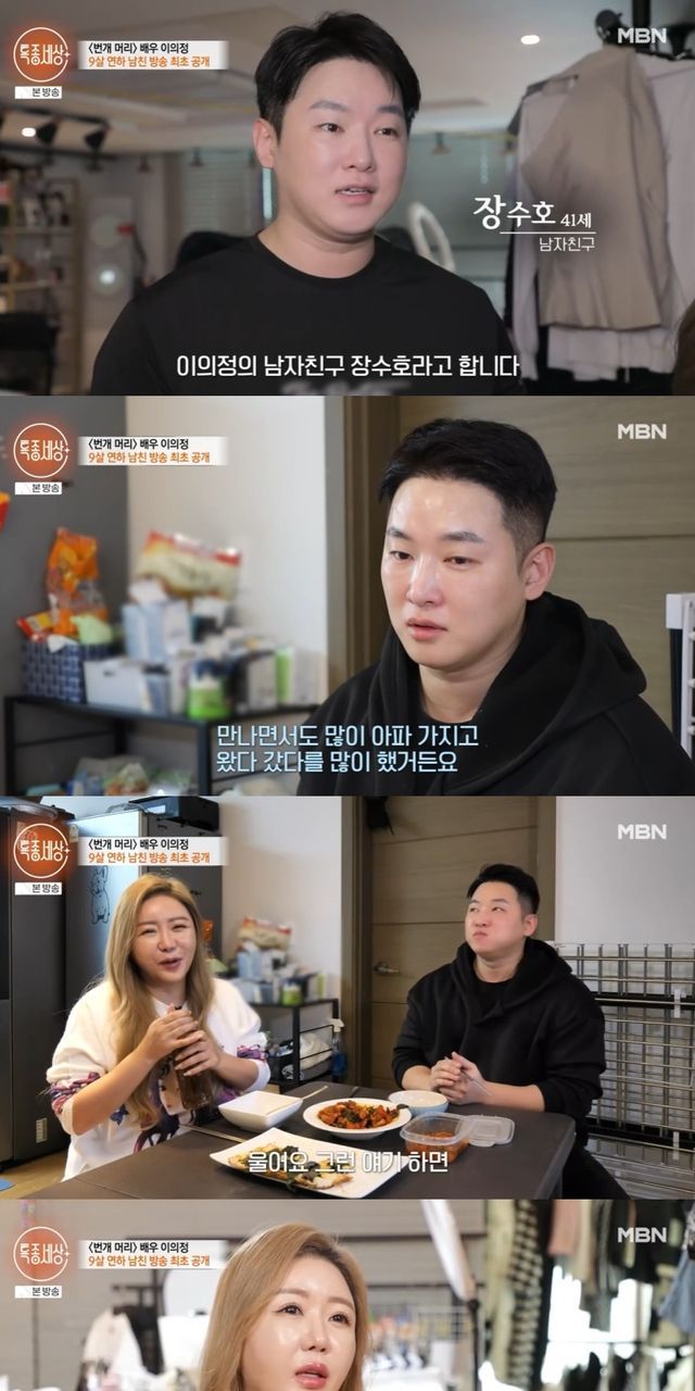 유도선수 출신인 이의정의 남자친구는 "장수호다. 84년생 쥐띠다"라며 이의정보다 9살 어린 나이를 밝혀 눈길을 끌었다. 6년째 열애를 이어오는 두 사람.