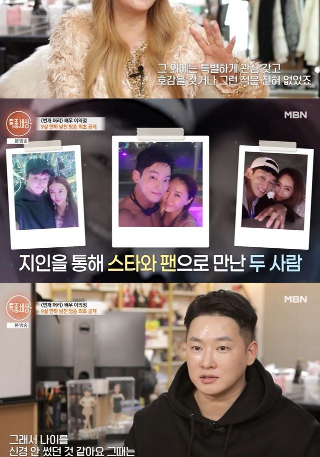 이의정은 "남자친구가 그때 18살이고 전 20대였다. 9살 차이니까. 중간중간 우연히 스치듯이 봤다. 그 외에는 특별하게 관심 갖거나 호감 가진 건 전혀 없었다"며 처음에는 지인을 통해 팬과 스타로 만나 몇년 간 친한 누나 동생으로 지냈다고 밝혔다.