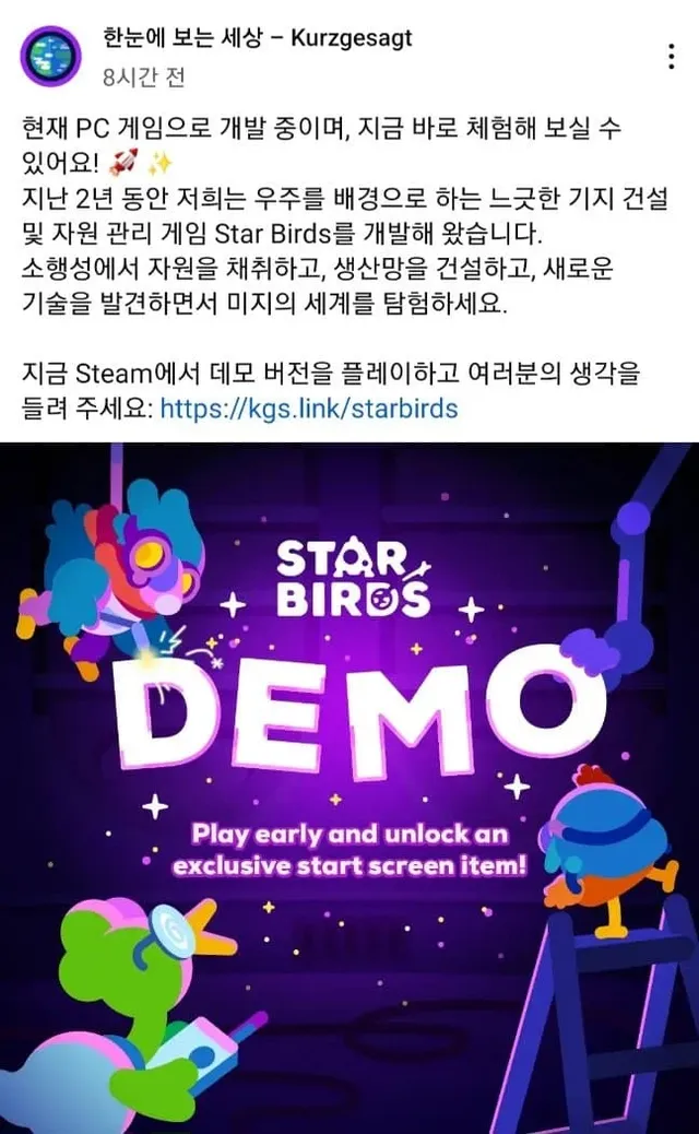 과학 유튜버 kurzgesagt 가 만드는 게임