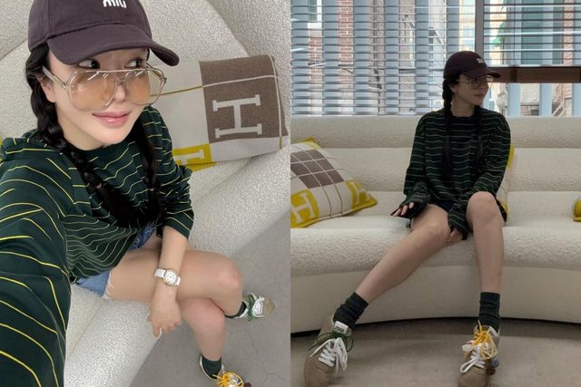 공개된 사진 속 안신애는 평소의 고혹적인 패션이 아닌 캐주얼룩을 소화하고 있는 모습이다. 그린 스트라이프 톱에 데님 숏팬츠를 입고 모자를 눌러 쓴 안신애는 안경까지 쓰고 힙한 매력을 풍겼다.