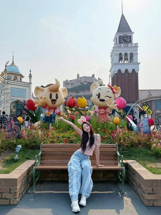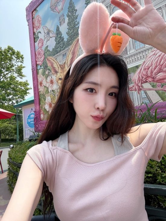 공개된 사진 속 성해은은 핑크색 오프숄더 티셔츠와 루즈한 핏의 청바지를 매치해 캐주얼하면서도 러블리한 분위기를 연출했다. 특히 토끼 귀 머리띠를 착용하고 벤치에 앉아 포즈를 취하거나, 손가락 브이 포즈로 카메라를 응시하는 모습이 눈길을 끈다.