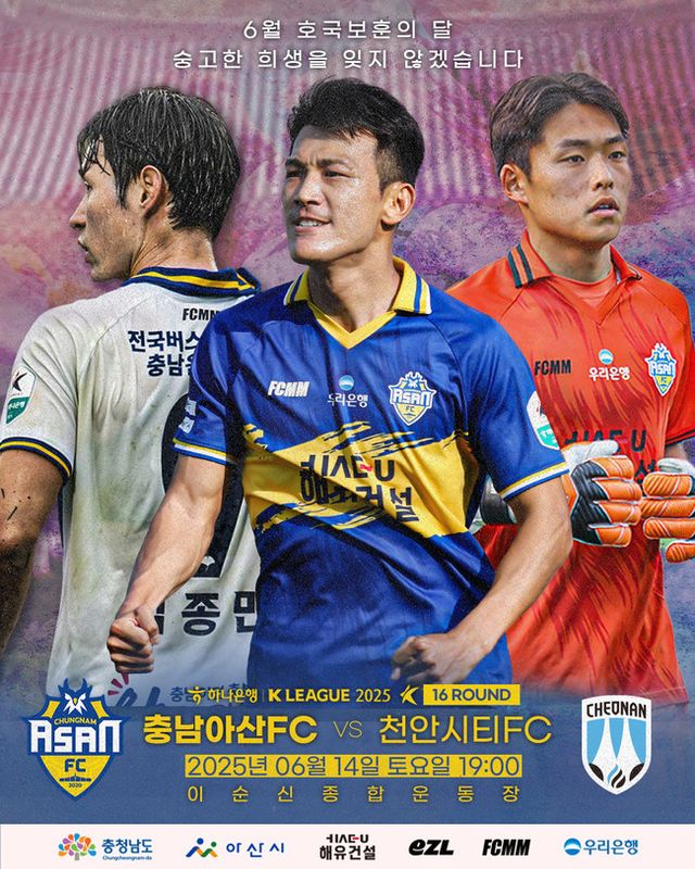 충남아산 관계자는 “더비 매치의 열기 속에서 호국보훈의 의미를 되새기고자 이번 행사를 준비했다”라며 “많은 팬분들이 경기장을 찾아 함께해 주시길 바란다”라고 전했다.충남아산은 지난 6일(금) 충북청주 원정에서 2-0 승리를 거두며 연승에 성공했다. 이번 경기에서는 그 기세를 이어, 홈 팬들 앞에서 시즌 첫 3연승에 도전한다.