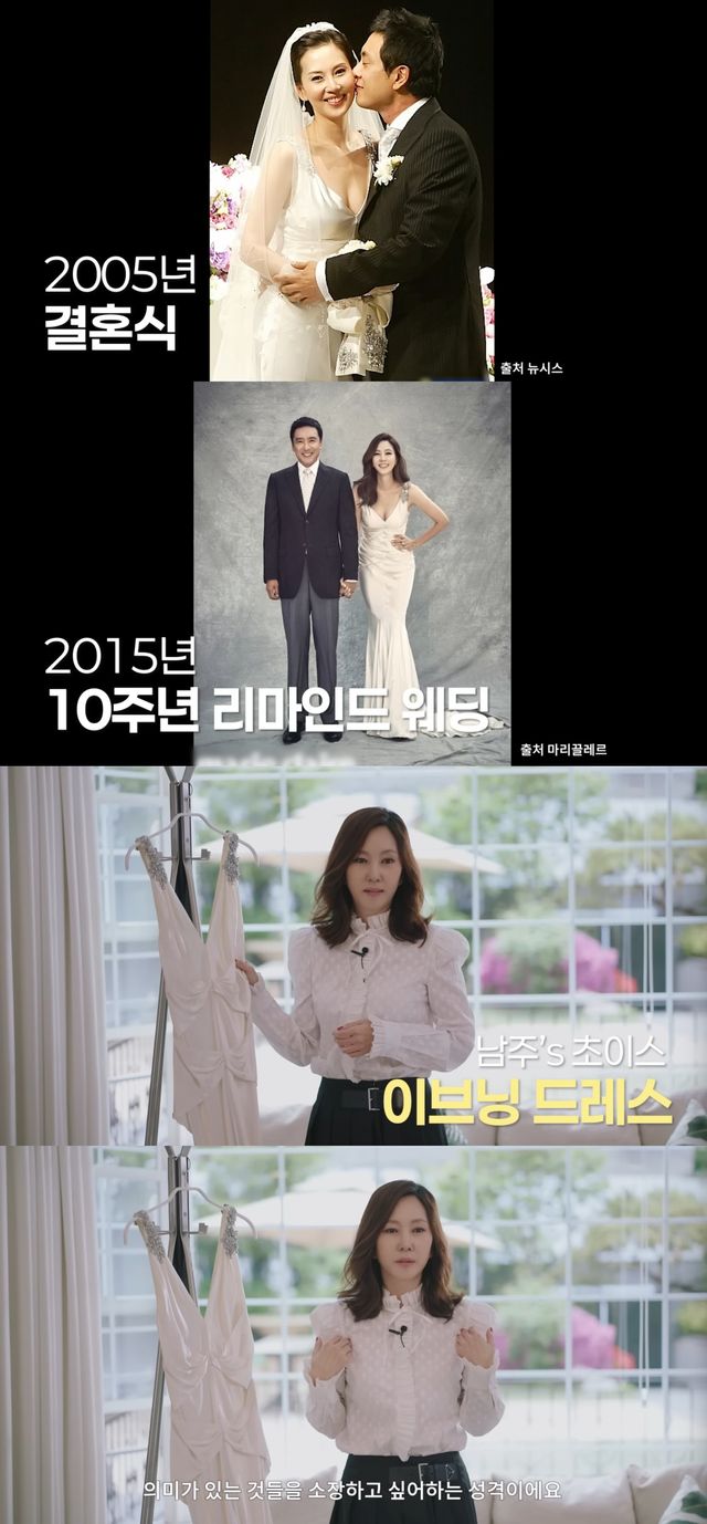 김남주는 "여자에겐 누구에게나 의미 있는 웨딩 드레스다. 아주 깨끗하게 잘 보관돼 있다. 우리나라에 베라왕 처음 들어왔을 때 제가 처음으로 입었다"며 드레스에 대해 설명했다.