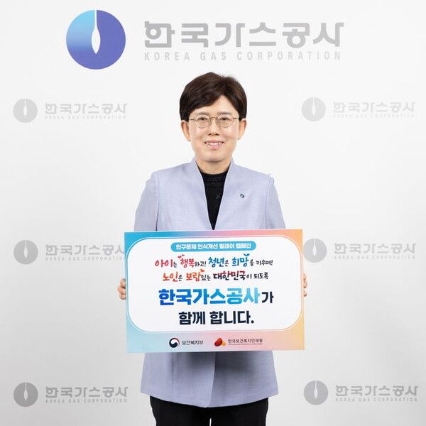 최연혜 한국가스공사 사장이 인구 문제에 대한 사회적 관심을 촉구하고자 '인구문제 인식개선 릴레이 캠페인'에 동참했다고 13일 밝혔다.