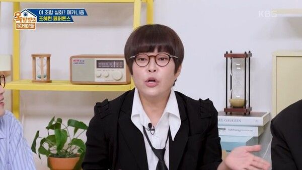 뉴시스 보도에 따르면, 12일 오후 방송된 KBS 2TV 예능 프로그램 '옥탑방의 문제아들'에는 조혜련과 그룹 '페퍼스톤'이 게스트로 출연했다.
