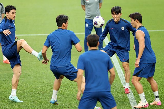 훈련에 집중하는 한국 축구대표팀 선수들 모습 / 뉴스1