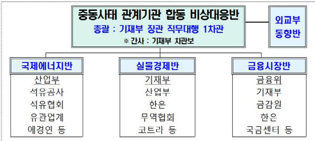 정부는 ‘관계기관 합동 비상대응반’을 가동해 중동 상황과 금융·실물동향을 24시간 모니터링하기로 했다. 특히 시장이 우리 경제 펀더멘털과 괴리돼 과도한 변동성을 보일 경우 상황별 대응계획에 따라 관계기관 간 긴밀한 공조 아래 즉각적이고 과감하게 조치해 나갈 계획이다.