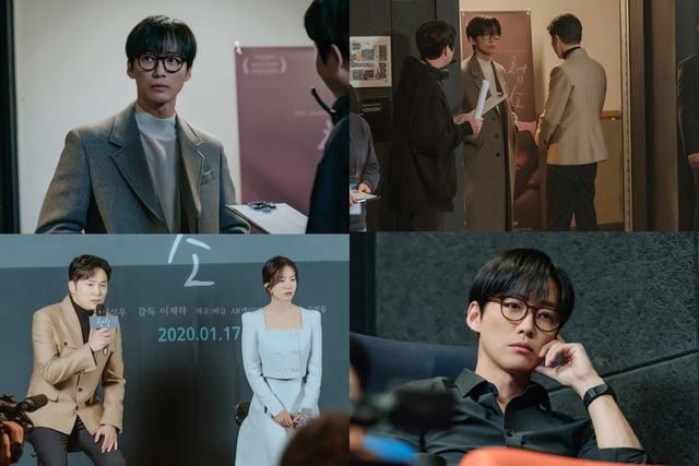 이와 함께 공개된 사진 속에는 이제하가 영화감독으로서 첫발을 디디는 날의 모습이 생생하게 담겨 있다. 오랜 시간 공을 들여 준비한 작품을 세상 밖으로 꺼내어놓는 첫 순간 신인 감독의 설렘과 긴장감 섞인 표정이 풋풋함을 더한다. 여기에 이제하와 마찬가지로 신인이었던 배우 채서영(이설 분), 제작자 부승원(서현우 분)까지 5년 전 패기 가득했던 그들의 시작을 만나볼 수 있다.