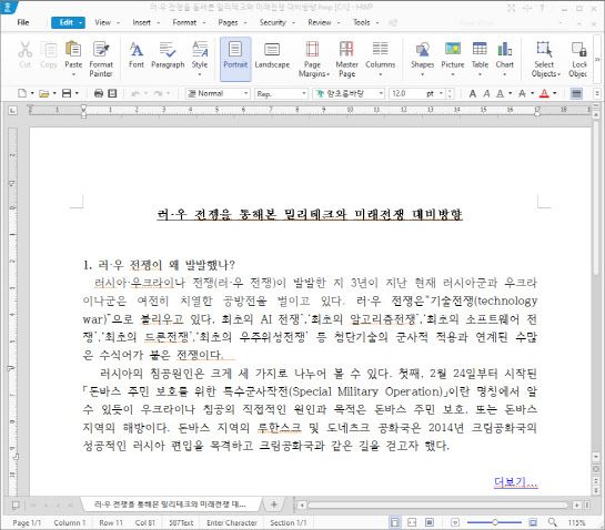 피싱 메일에는 러시아와 우크라이나 전쟁에 대한 가짜 논문 문서가 첨부됐다. 이 문서를 열람하기 위해 해커는 메일 본문에 표기된 비밀번호 입력을 요구했다. 이용자가 해당 문서를 열어보고 내용을 마저 읽으려고 문서 내 ‘더보기…’ 링크를 클릭하면 악성파일이 다운로드된다.