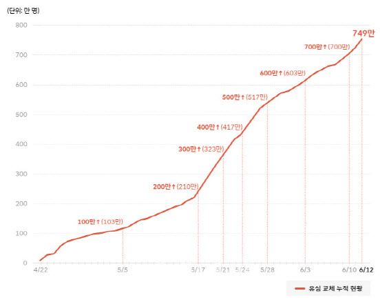 한편, 해킹 사고 이후 유심을 교체한 가입자가 749만 명을 기록했다. 전체 예약 중 교체 완료율은 77%에 이른다. SK텔레콤은 오는 16일까지 잔여 예약자 모두에게 교체 안내 문자를 발송하고, 20일까지는 이들 고객에 대한 교체를 마친다는 계획이다.