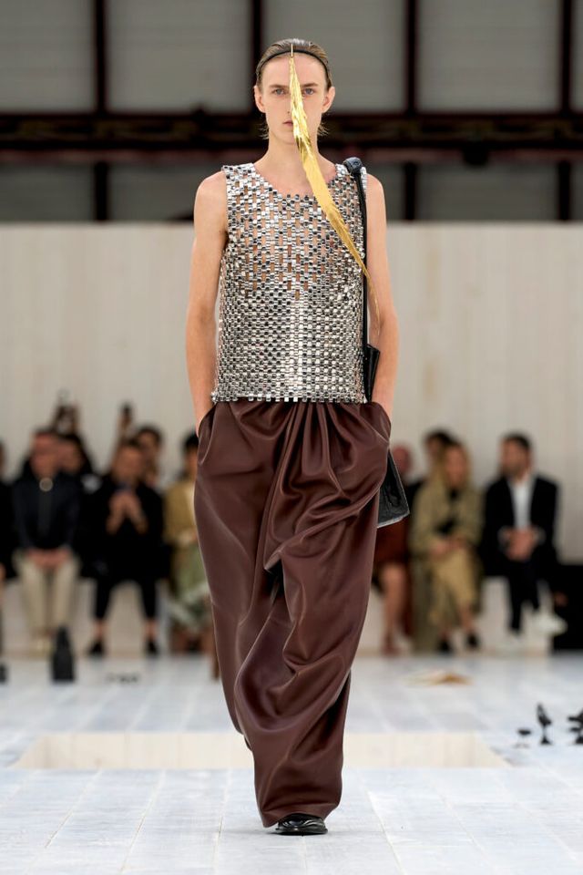 FAVORITE LOOK 조나단 앤더슨의 장기가 빛을 발한 절제미 넘치는 메탈릭 톱과 드레이프 팬츠의 조합이란.