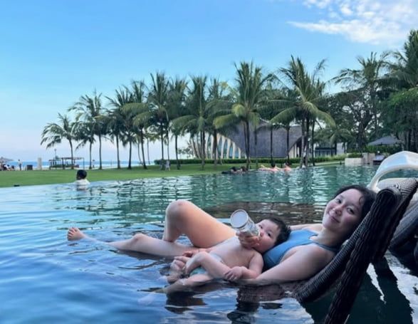 이와 함께 공개한 사진에는 이유영이 딸과 물놀이하거나, 베드에 누워있는 모습이 담겼다.