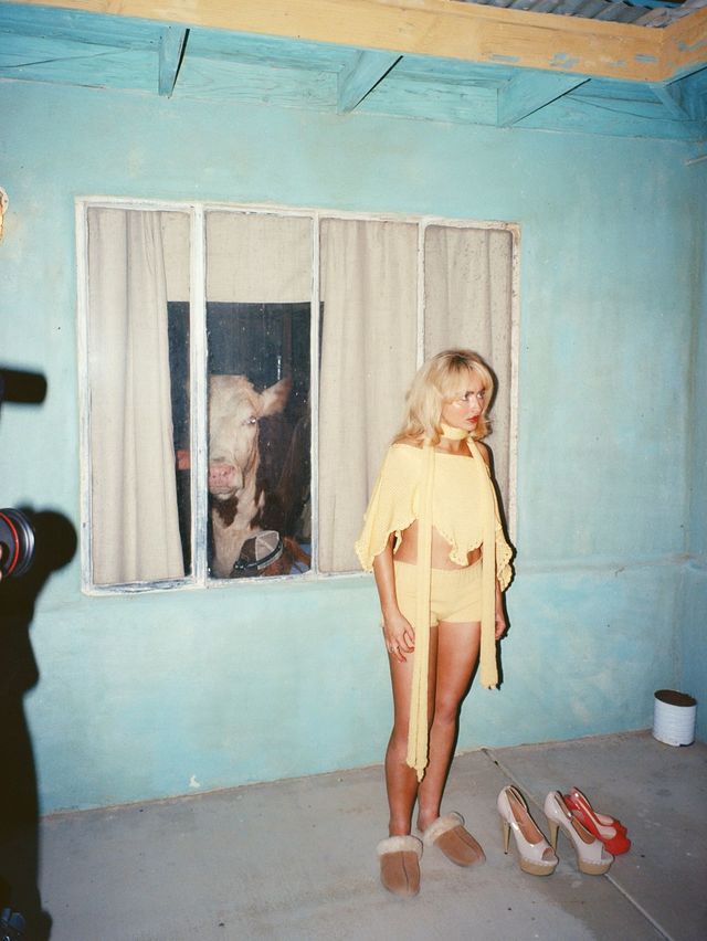강렬한 체리 레드 미니 드레스에 롤러스케이트를 매치해 파워풀하면서도 장난기 가득한 분위기를 연출했다. 노란색 두건으로 풍성한 머리를 눌러 얼굴이 더욱 잘 드러나도록 했고, 이로써 상체 비율이 작아 보이는 효과를 더했다.