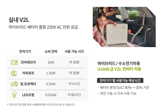 팰리세이드 기준 전기차와 동일한 출력의 V2L 사용 가능