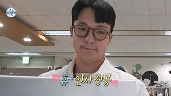 텅 빈 사무실에 홀로 업무 준비를 하는 고강용은 책상 위에 놓인 거울을 힐끔거리며 사무실에 들어오는 선배들에게 방긋 인사한다. 고개를 빼꼼하고 눈치를 보는 고강용의 모습에 전현무는 "눈치를 많이 볼 수밖에 없다"라며 신입 아나운서의 마음에 공감한다.