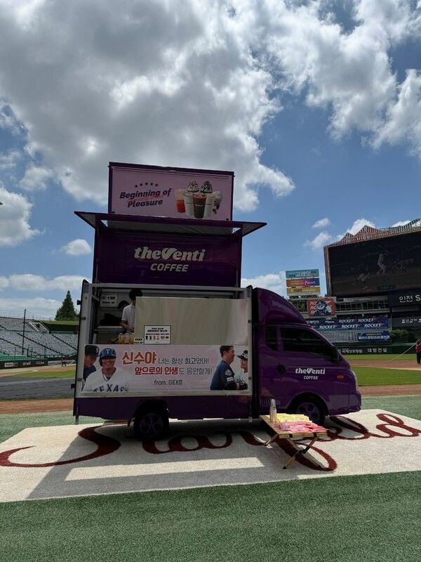 추신수 보좌역의 '절친' 이대호가 보낸 커피차였다.