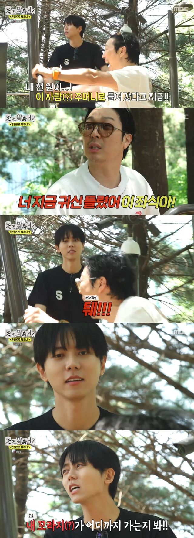 이어 주우재는 "나 물 산다. 지금 목도 안 마른데 사 먹을 거다"면서 1,500원 지출을 예고했고, 하하는 "너랑 나랑은 하나다. 우리 공금을 지킨 건데 너 왜 짜증 내냐. 운동하자"면서도 이내 제작진에게 "천 원에 해줘라. 돈도 없잖아 얘"라며 화를 돋웠다.