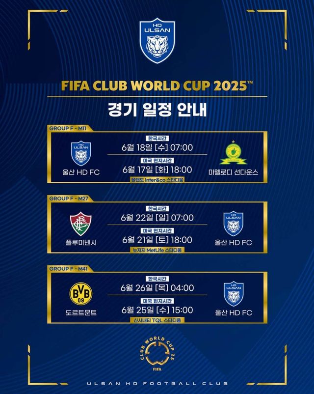 2025 FIFA 클럽 월드컵 울산 HD 경기 일정 안내. / 울산 HD 공식 인스타그램
