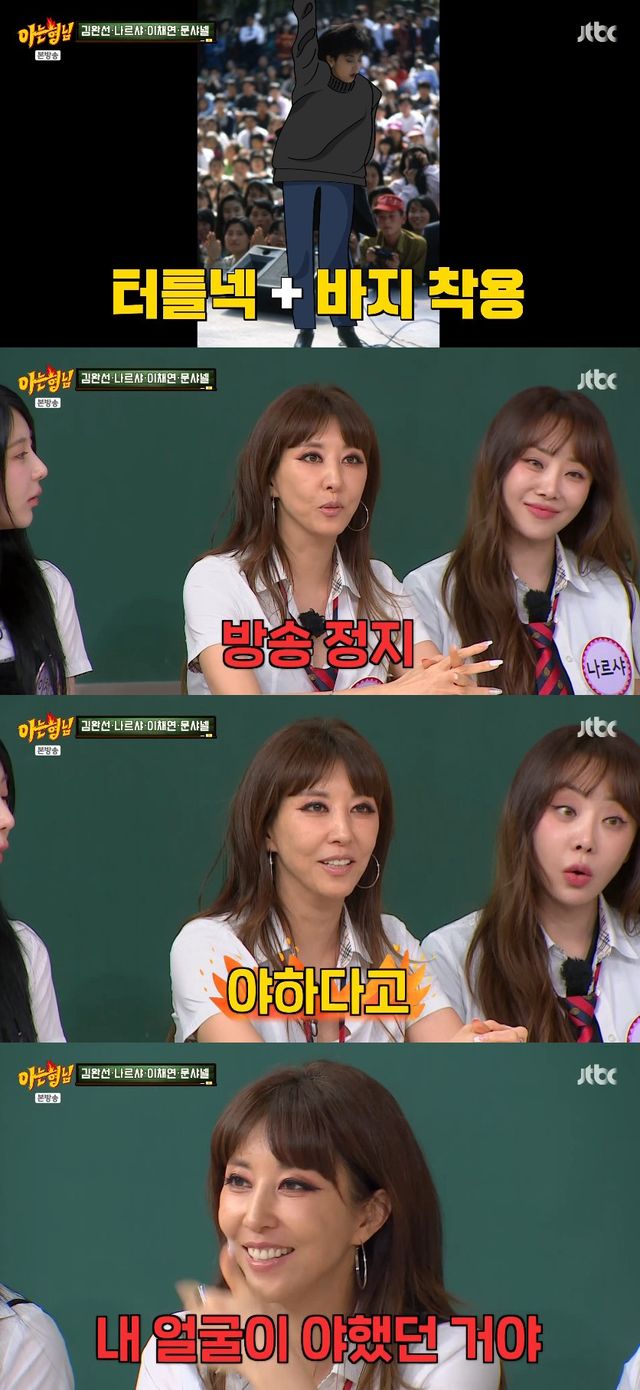 당시 김완선은 방송 규정으로 인해 황당한 해프닝을 겪기도 했다고. 김희철이 "누나가 기억나는 게 온몸을 가리고 있는데도 섹시하다고 그것도 걸리고 그랬다"고 하자 김완선은 "터틀넥 입고 바지까지 입었는데 정지 먹은 적도 있다. 야하다고"라며 방송 정지를 당했던 과거를 회상했다.