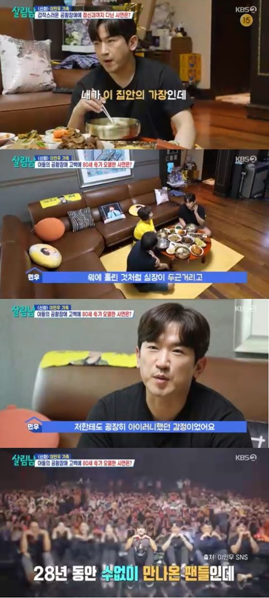 14일 방송된 KBS 2TV '살림하는 남자들 시즌2'에서는 이민우가 공황장애 증상을 느꼈다고 밝히는 모습이 전파를 탔다.