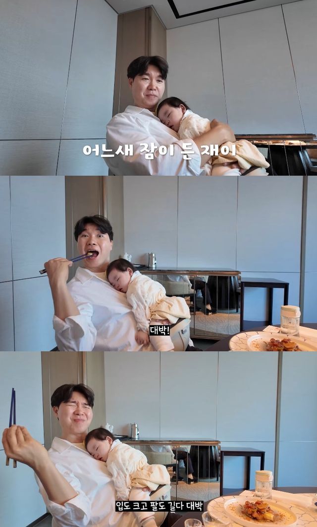 식사 도중 갑자기 졸려 하는 재이에 박수홍은 딸을 품에 안은 채 잠을 재웠고, 곧이어 재이는 잠에 들자 김다예는 "내가 먹여 줄게 여보"라며 남편을 챙기는 모습을 보였다.