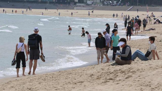 부산 해운대해수욕장을 찾은 관광객들과 시민들이 더위를 식히고 있다. / 연합뉴스