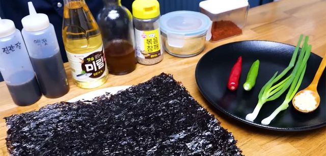 이제 가장 중요한 김 굽기 단계다. 가스 불을 아주 약하게 해서 묵은김을 굽는다. 한 장씩 굽지 말고 두 장씩 겹쳐서 굽는다. 김대석 셰프는 "이렇게 겹쳐서 살짝 왔다 갔다 해야 한다"며 "잽싸게 해야 하고 손놀림을 빨리빨리 해야 한다"고 조언했다.