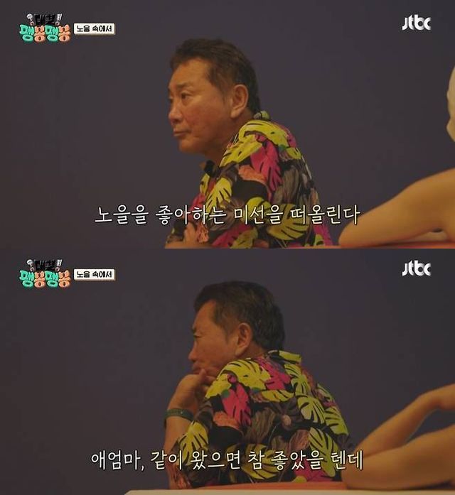 그는 "아무래도 생각이 나긴 난다. 애 엄마가 같이 왔으면 참 좋아했을 텐데"라며 "애 엄마가 이 프로그램을 정말 좋아했다. 같이 하는 거라고 같이 나가자고 하더라. 그래서 더 생각이 나고 아쉽더라"고 속상한 마음을 털어놓았다.