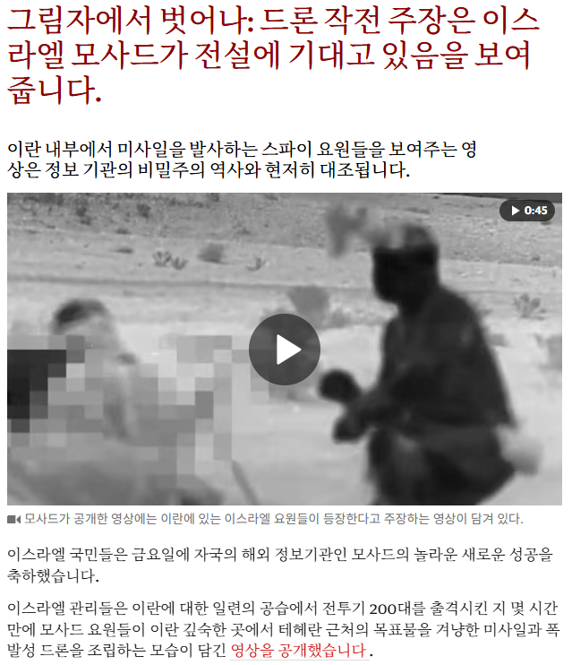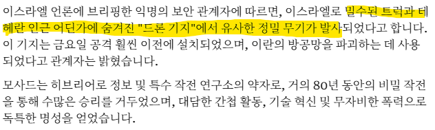 이번 이란 내 지휘부 및 방공망 제거 작전에 대해 모사드가 슬슬 정보를 풀고 있네요.