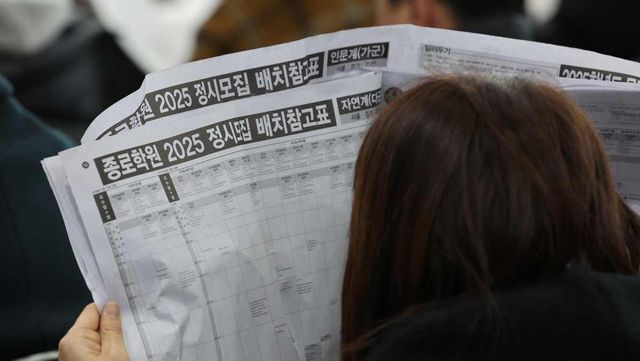 서울 종로구 성균관대학교 600주년기념관에서 열린 종로학원 2025 정시 전략 설명회에서 학생과 학부모들이 입시자료를 살펴보고 있다. / 연합뉴스