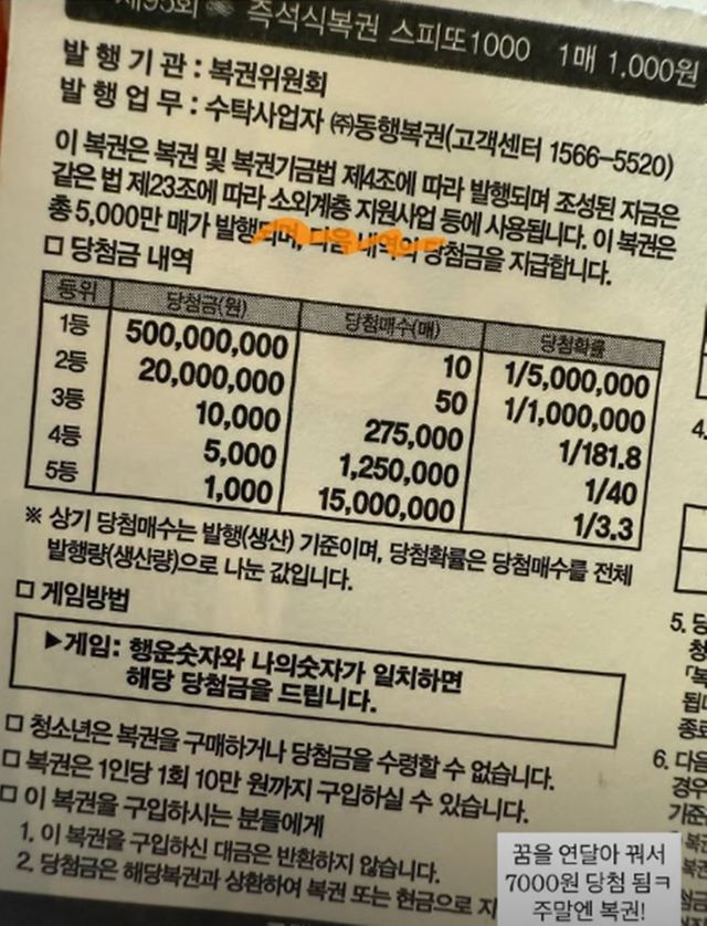 박하선은 14일 자신의 SNS에 “꿈을 연달아 꿔서 7000원 당첨 됨”이라며 “기부도 됩니다”라는 말을 덧붙였다.