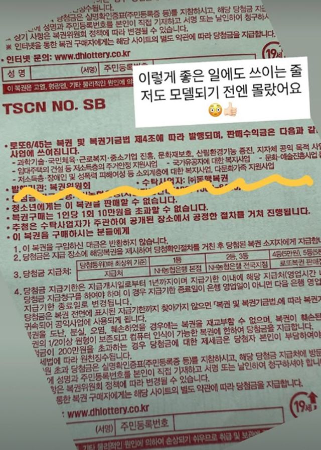 또 박하선은 “이렇게 좋은 일에도 쓰이는 줄 저도 모델되기 전엔 몰랐어요”라며 복권 수익이 사용되는 공익적 목적에 감탄을 표현해 눈길을 끌었다.