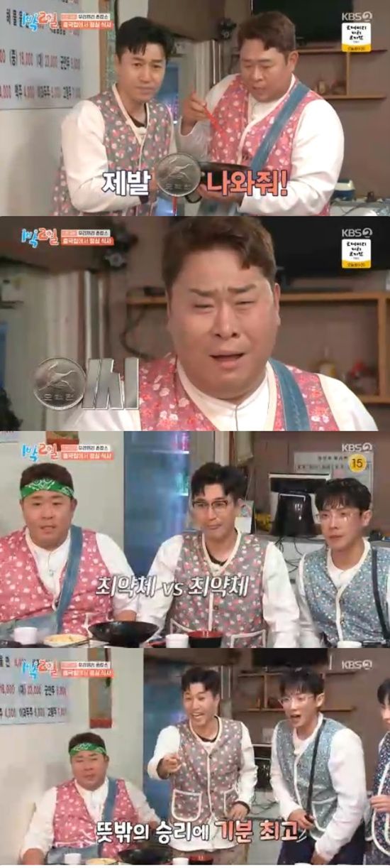 김종민과 문세윤은 용돈을 합쳐 자장면 하나를 주문하고 동전 던지기로 한 사람에게 자장면을 몰아주기로 했다.