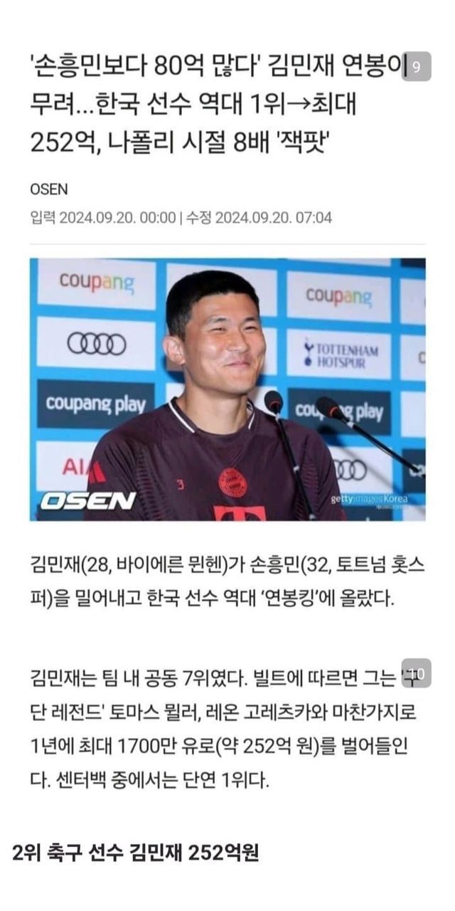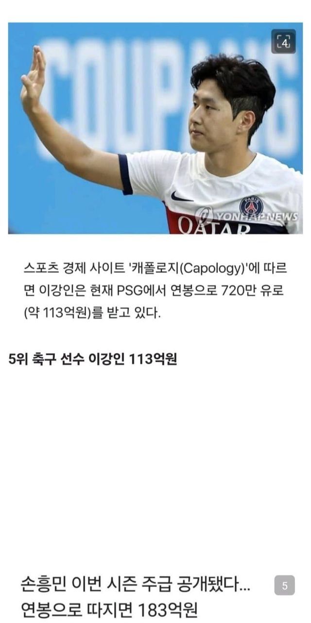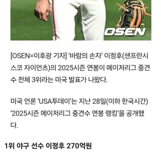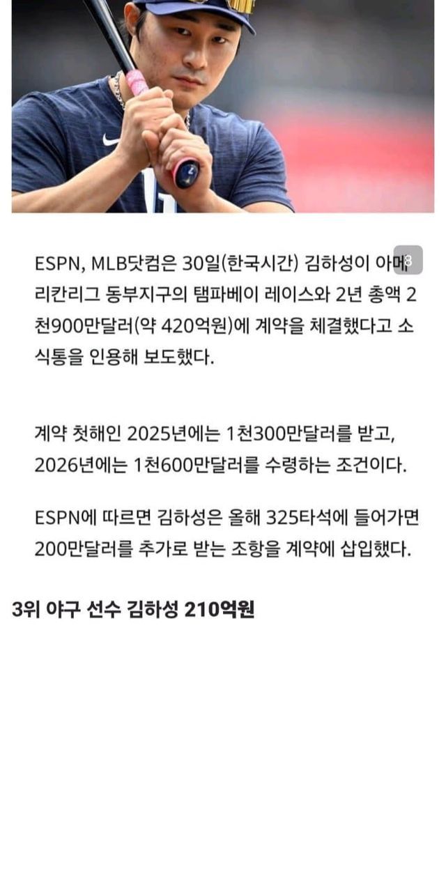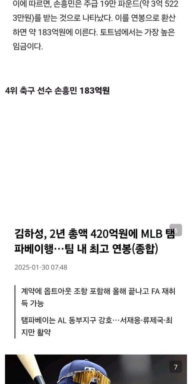 현재 한국인 스포츠 선수 연봉 순위 TOP7(세전 기준)