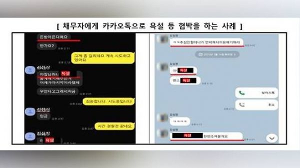 | 채무자에게 카카오톡으로 욕설 등 협박을 하는 사례. [금감원 제공] |