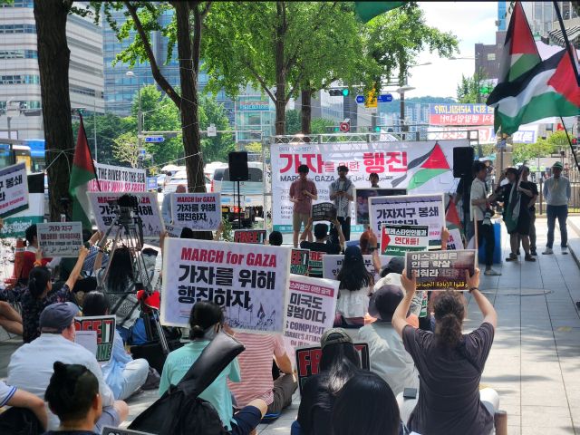 집회가 끝난 뒤 참가자들은 "인종학살 중단하라", "가자 봉쇄 해제하라" 등 구호를 외치며 주한미국 대사관을 거쳐 주한이스라엘 대사관까지 행진했다.