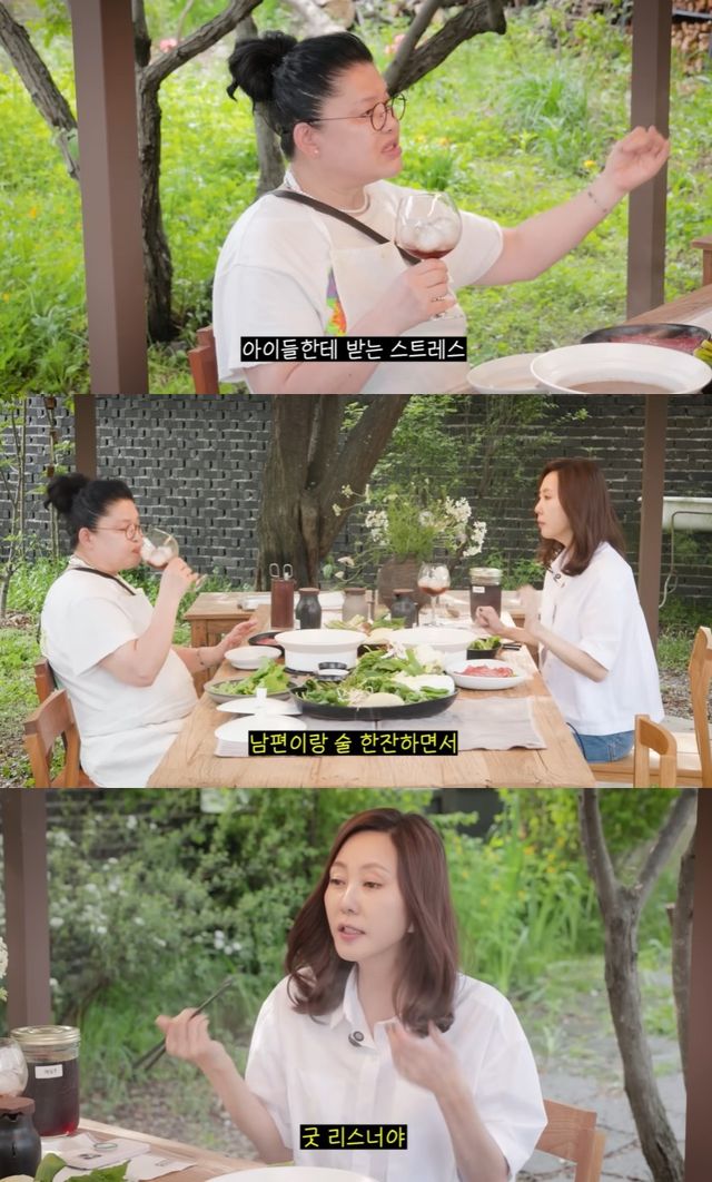 이어 "화를 내는 게 아니라, 남편이랑 술 한 잔 하면서 다 얘기하면 남편이 들어주느라고 힘들다"며 "잘 들어준다. 굿 리스너다"고 남편을 향한 고마움을 드러냈다.