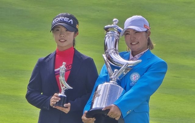 15일 끝난 JLPGA 산토리여자오픈에서 아마추어 부문 우승을 차지한 양효진(왼쪽)과 전체 우승을 차지한 타카하시. 남녕고 제공