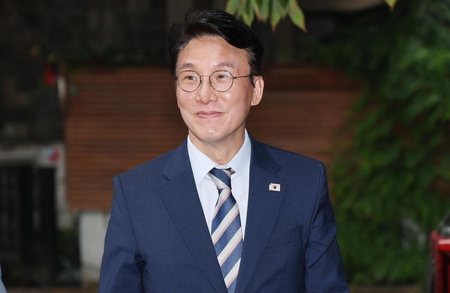 김민석 국무총리 후보자가 16일 오전 서울 종로구 통의동 금융감독원 연수원에 마련된 인사청문회 준비 사무실로 출근하고 있다. / 뉴스1