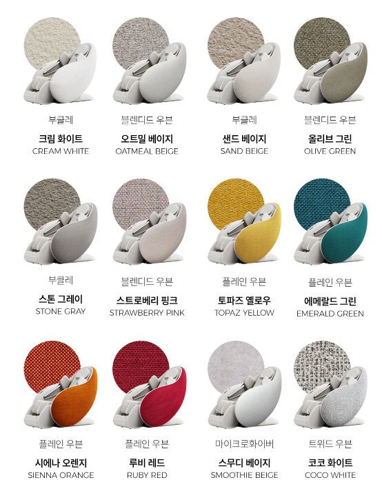 세라젬은 해당 서비스를 '파우제 M8 Fit(핏)'에 처음 적용하며, 컬러와 패턴, 소재 조합에 따라 총 12가지 스타일 선택지를 제안했다. 구매 시 기본 제공되는 부클레 소재의 크림 화이트와 블렌디드 우븐 소재의 오트밀 베이지 외에도 취향과 공간에 어울리는 다양한 옵션이 마련돼 있다.