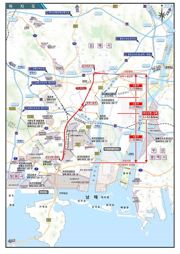 부산 강서구 송정동~경남 김해시 수가동까지 총 연장 6.86㎞ 길이의 4차로 도로와 터널 3개소, 교량 1개소, 지하차도 1개소 등을 시공하는 프로젝트다. 총 공사금액은 약 3400억원이며 동부건설은 70%의 지분으로 주관사를 맡았다.