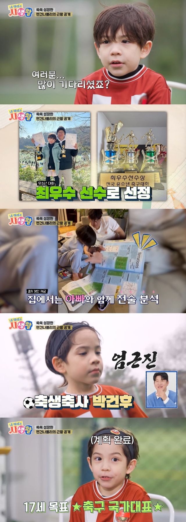 이에 이현이가 "아버님 코칭이 있었던 거냐"고 묻자 박주호는 "진짜 없다. 저 웃기다 이게. 17세 국가대표가 되겠다는 건 세계에서도 몇 없는 애들이다"라며 아들 건후가 스스로 세운 목표임을 밝혔다.