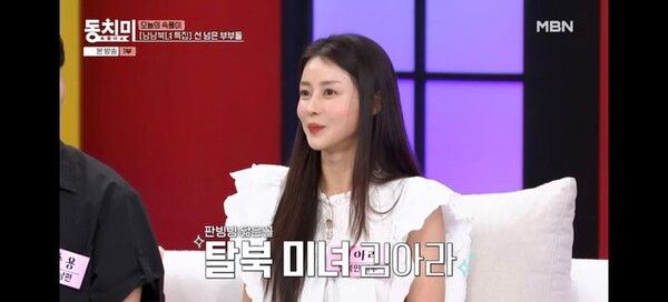 뉴시스 보도에 따르면, 14일 방송된 MBN '속풀이쇼 동치미'엔 김아라가 남한 남편 박순용과 함께 출연했다.