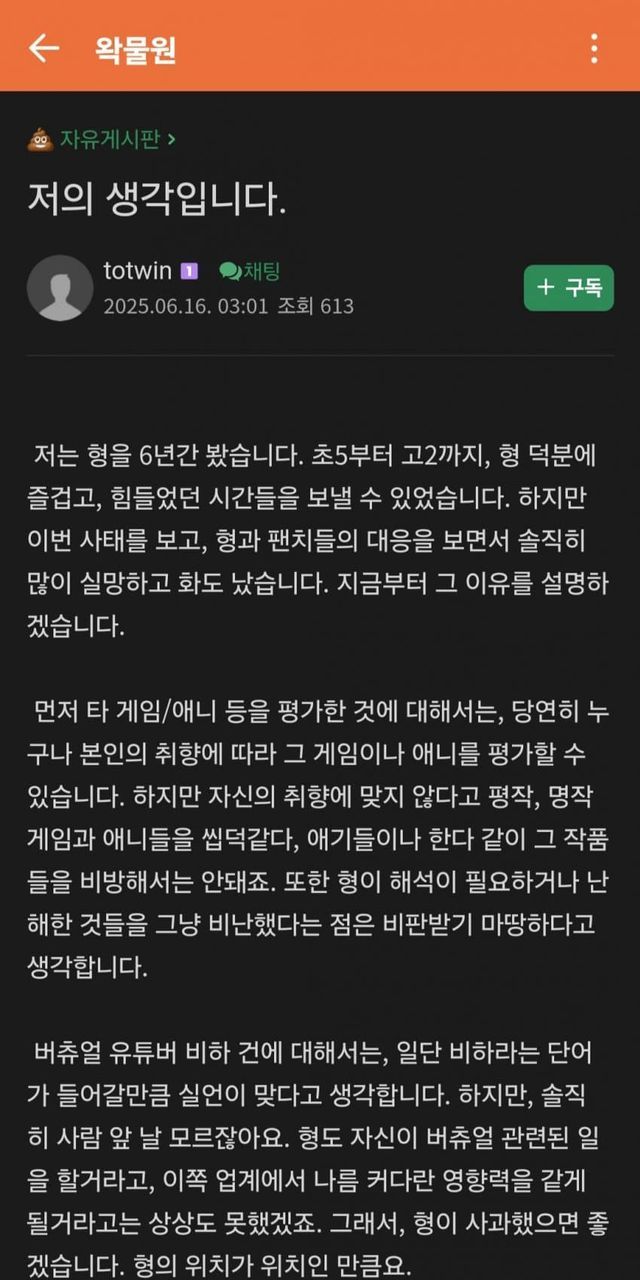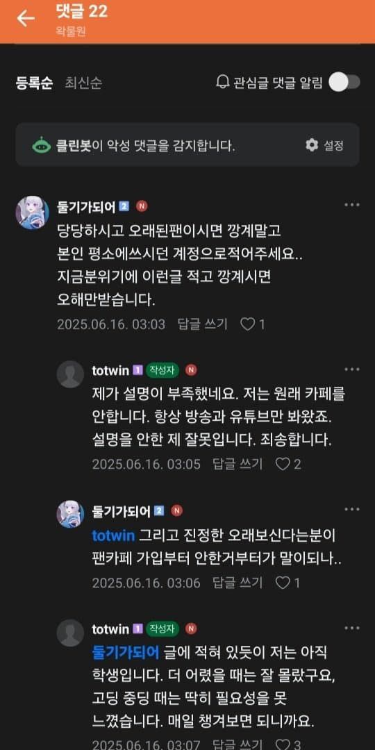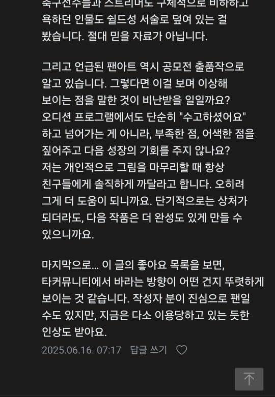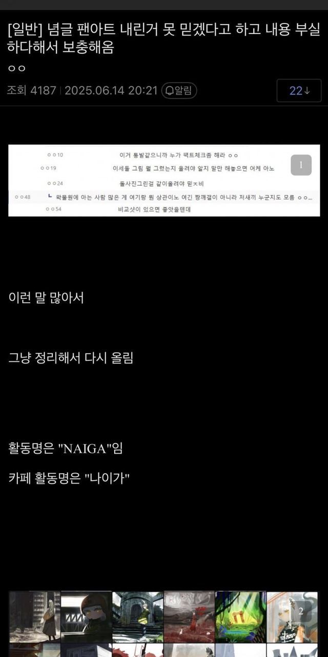 팬아트 못 그렷다고 카페 과거글까지 파묘해서